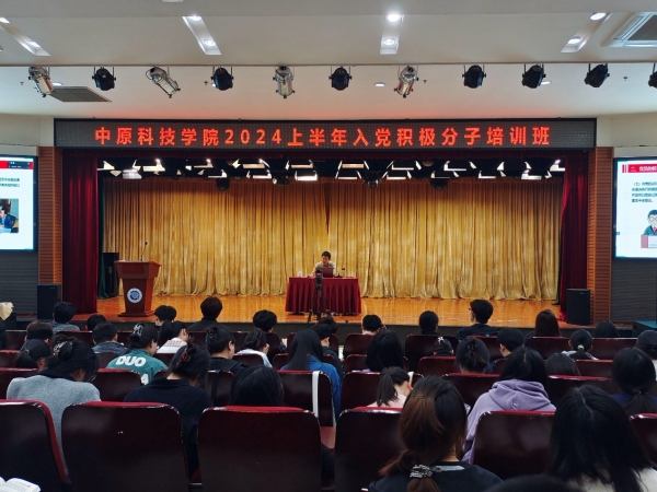 为深入学习贯彻习近平新时代中国特色社会主义思想,扎实做好入党积极分子教育培养工作,严把发展党员“入口关”,中原科技学院于4月13日和4月14日分别在郑州校区学术报告厅和许昌校区自强报告厅举办中原科技学院2024年上半年(总第三期)入党积极分子培训班。
